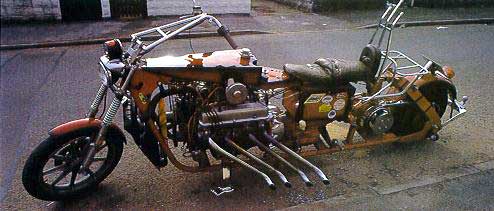 На этой страничке помещены фотографии нестандартных мотоциклов, многие из них безполезны в ежедневной жизни. Зато народ самовыразился и сделел это круто.