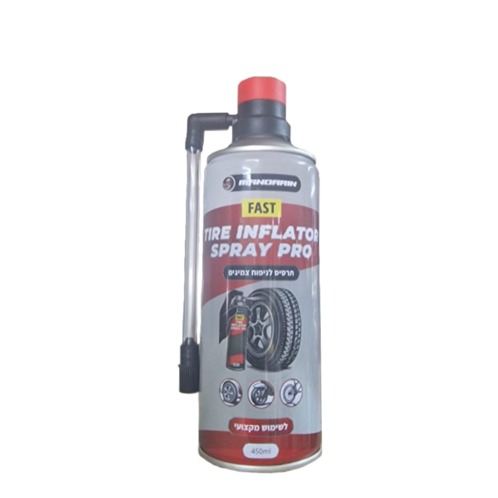 מתקן תקר איכותי Mandarin Tyre Repair מתאים לאופנועים וקטנועים. מנפח את הצמיג בקצף ונותן הזדמנות להגיע למוסך ולתקן את הפנצ`ר, מכסה את הצמיג מבפנים בשכבה אחידה , שניתן להסיר אותה בקלות לאחר מכן . לא מומלץ כפתרון קבוע.