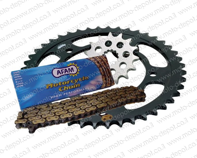 שרשרת איכותית Afam520 "Xs"Ring בצבע זהב וסט גג"ש מותאם לאופנוע ותלוי במודל ושנת ייצור.