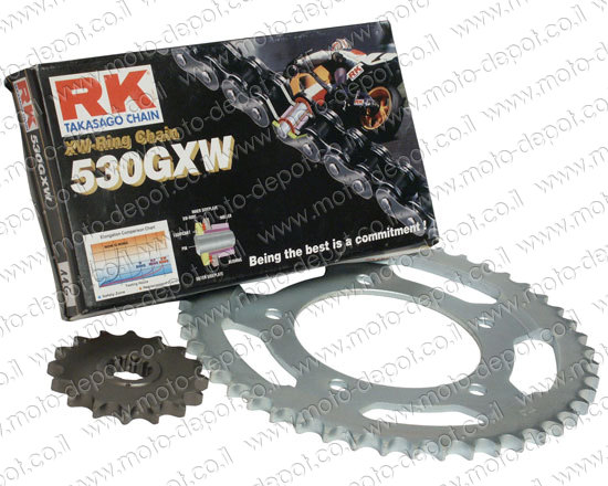 שרשרת יפנית איכותית RK530GXW "XW" Ring, היא החזקה ביותר בסדרה 530, מגיעה עם סט גג"ש איכותיים במיוחד, המותאמים בדיוק לאופנוע שלכם ותלוים במודל ושנת ייצור.