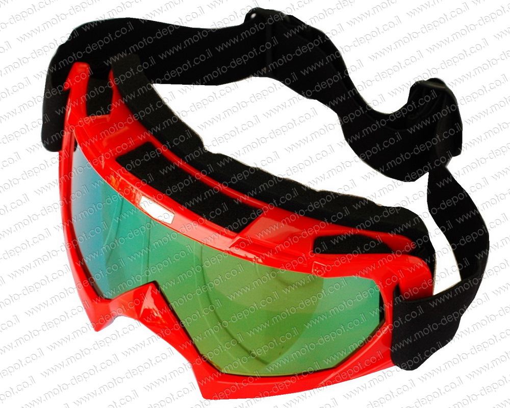משקפי אבק מוטוקרוס אדומות עם עדשה צבעונית
