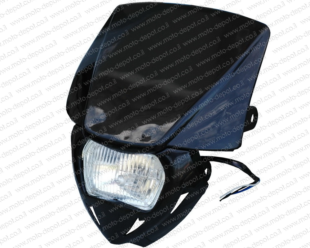 מסיכת חזית עם מנורה הלוגן H4 35W/35W -12V. מתחברת עם גומיות לטלסקופים.