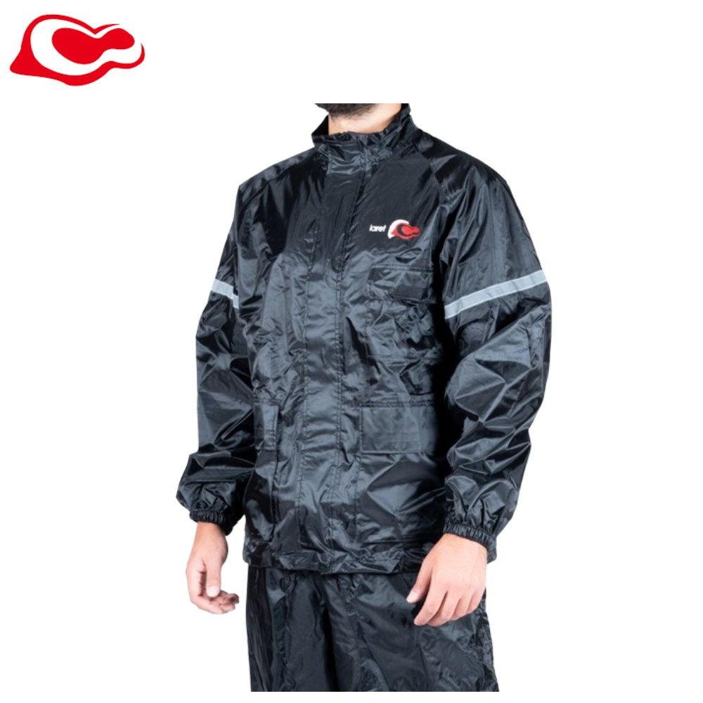 חליפת גשם עשויה בד פוליאסטר ותפרים מולחמים בטכנולוגיה שאוטמת את החליפה 100% למים, מחזירי אור להגברה הבטיחות ונראות בחושך, שני כיסים קדמיים גדולים בחזית, כיסוי כפול לארוך הרוכסן הראשי למניעת חדירת מים דרך שיני הרוכסן, כיווץ גומי בקצה השרוולים ובקצה התחתון של המכנסיים.